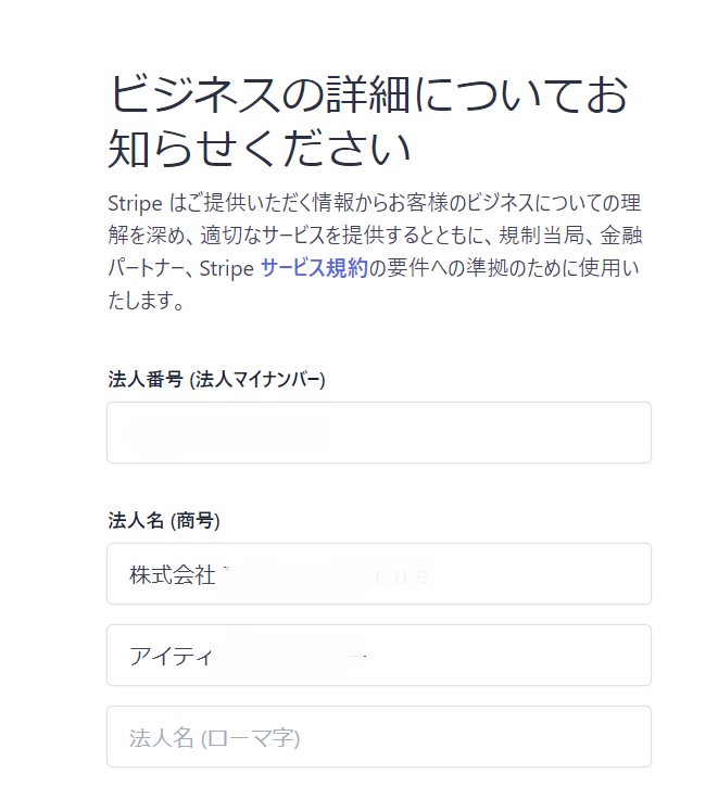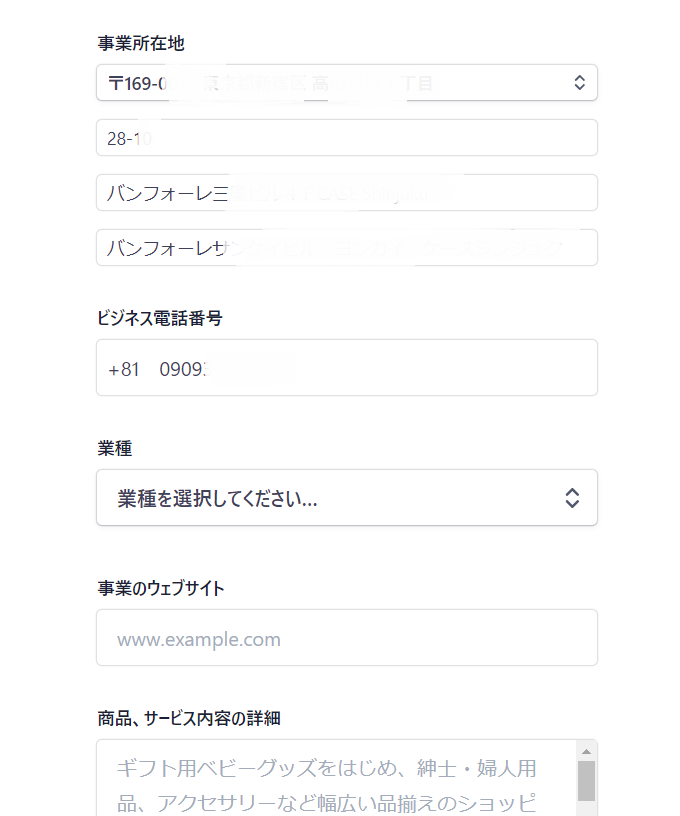 6.事業登記住所、電話番号、業種、WEBサイト(あれば)、商品、サービス内容の詳細についての情報を準備して入力