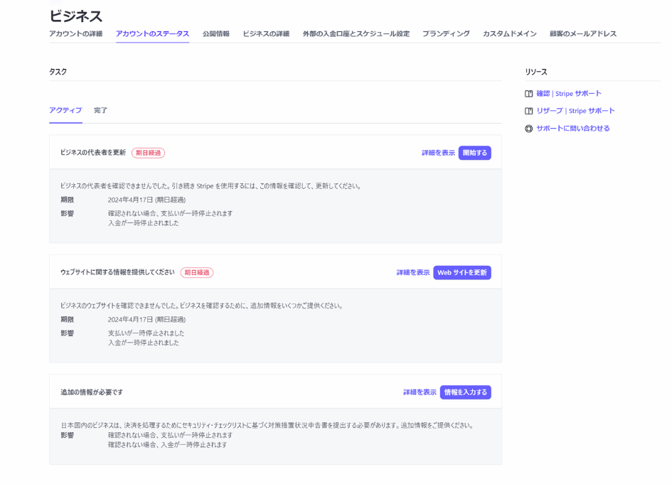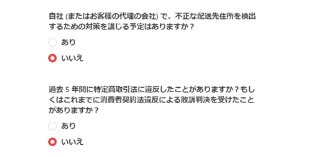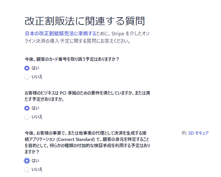 決済システムStripeのアカウントを作成後、セキュリティ・チェックリストに基づく対策処置状況申告書への回答を求められます。